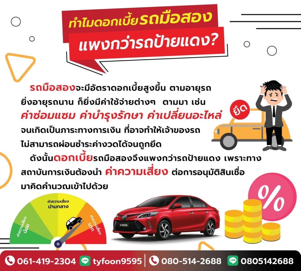 รถมือสองต้องมีค่าเสื่อมไปตามอายุการใช้งาน ยิ่งใช้งานนาน ยิ่งมีค่าใช้จ่ายต่างๆตามมา เช่น ค่าซ่อมแซม ค่าบำรุงรักษา ค่าเปลี่ยนอะไหล่ จนเกิดเป็นภาระทางการเงิน ที่อาจทำให้เจ้าของรถไม่สามารถผ่อนชำระค่างวดได้จนถูกยึด) ดังนั้นดอกเบี้ยรถมือสองจึงแพงกว่า เพราะทางสถาบันการเงินต้องนำความเสี่ยงมาคิดคำนวณเข้าไปด้วย